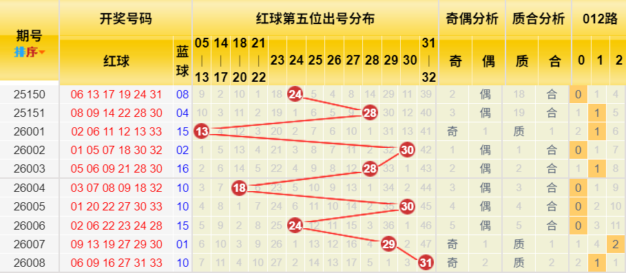 核心研判:为化解连续高和值压力,本期红球形态将进行 “重心向中段(12-26)压缩” 的调整。选号可遵循历史同期在第二位(09-15)、第三位(08-19)及第四位(15-23) 的区间规律,这是实现和值软着陆的关键。