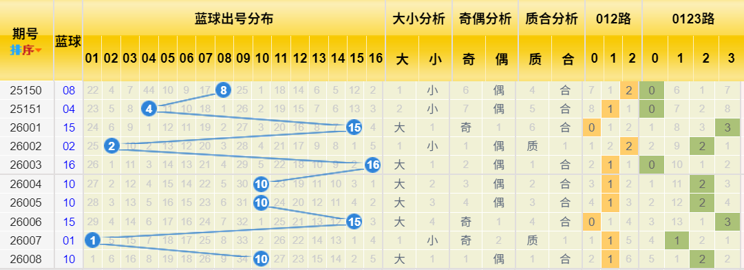 二、蓝球分析:2路号码占优,历史规律指向明确