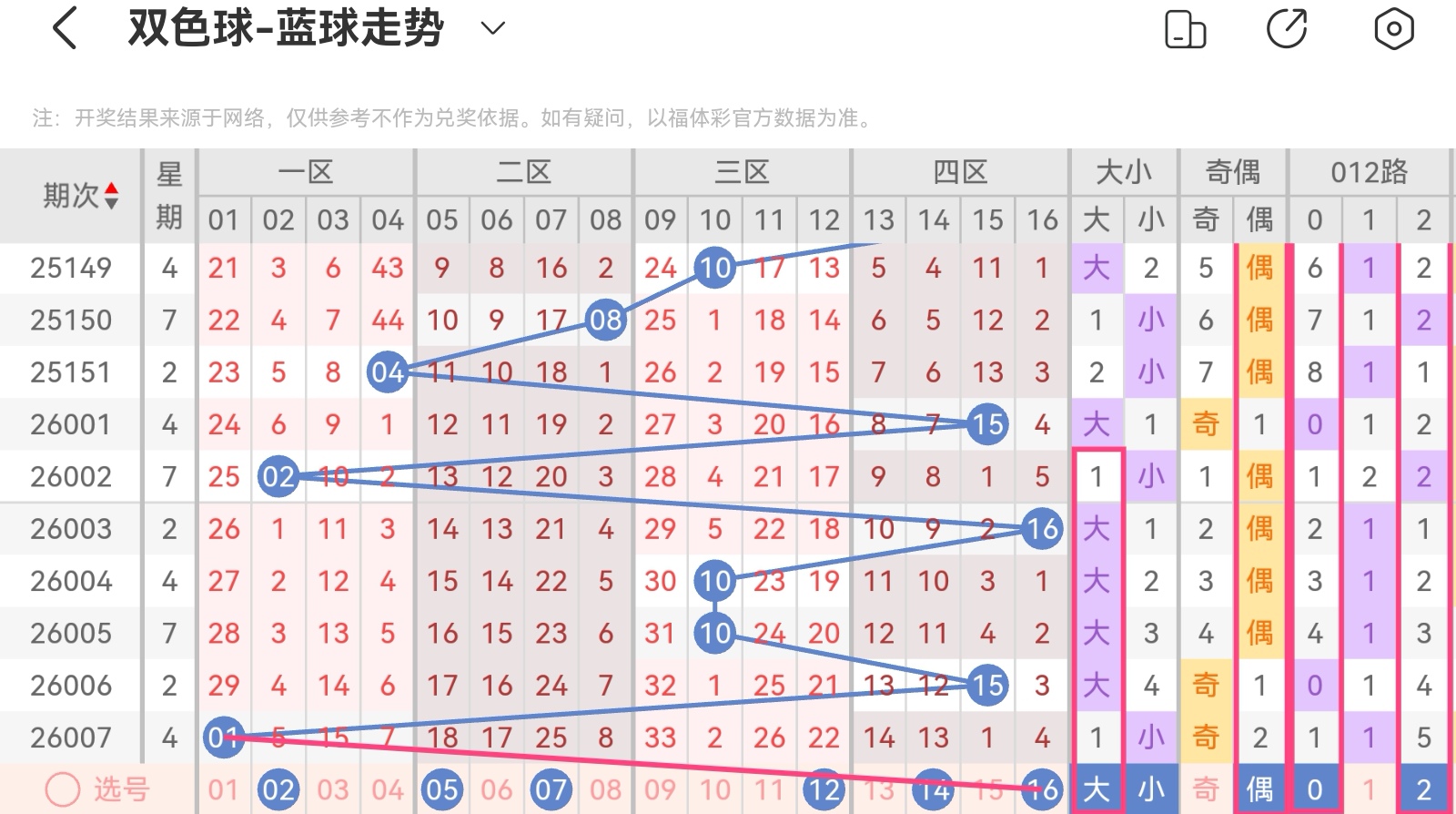 双色球第26008期基本走势分析 (上期会员文章凤尾正确,胆码中一,杀八蓝正确)