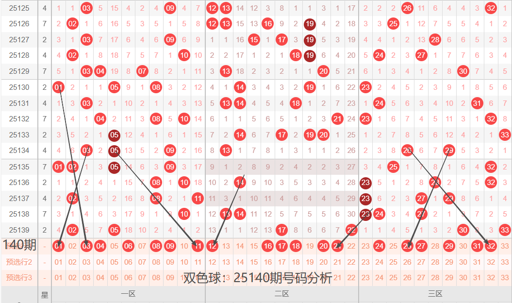 先介绍下上期开奖号码的基本情况,红球奇偶比:3:3,区间比:2:2:2,012路比:2:1:3,通过上期号码简单介绍,分享下25140期号码球个人认为的出号可能,供大家参考!