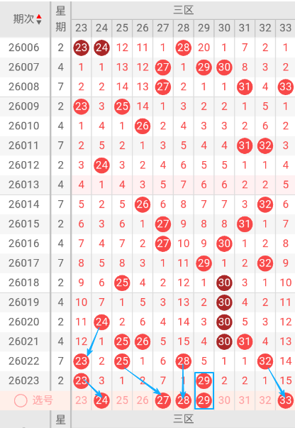 双色球三区(23-33)