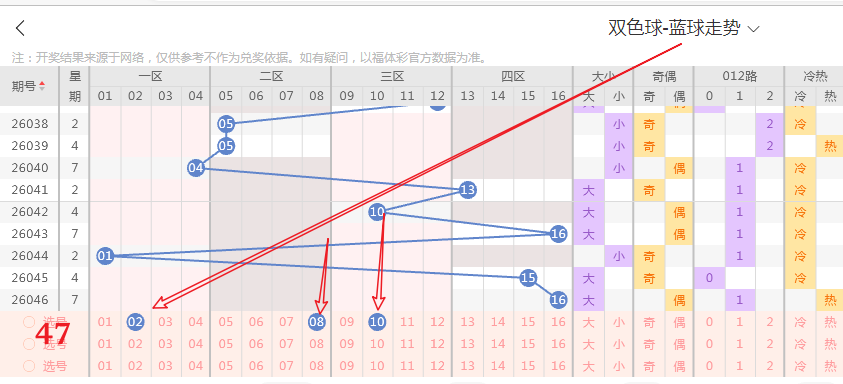 第二步:定胆精选 在剩余的号码中,再进行精挑细选。通过分析奇偶、大小、012路等规律,锁定1-2个最心仪的号码作为核心胆码。 取近5期蓝球之和,除以5后四舍五入取整为基点,以基点±2之数为蓝球胆码备选。这套“先杀后定”的策略,兼顾了效率与概率,让选号过程更有章法。