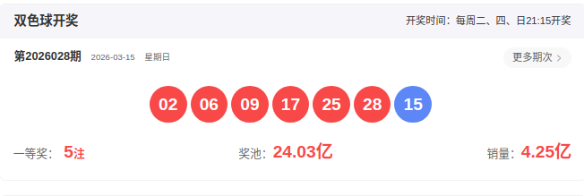 2026028开奖号码: