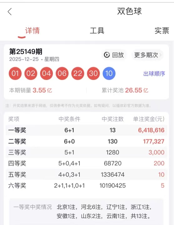 前区奖号开出2个重号,连号开出1个,奇偶比为1:5,和值为65,跨度为29,三个区间比为4:1:1,后区开出0个重号,开出1个大号。