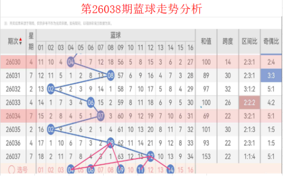 双色球第26038期走势及分析