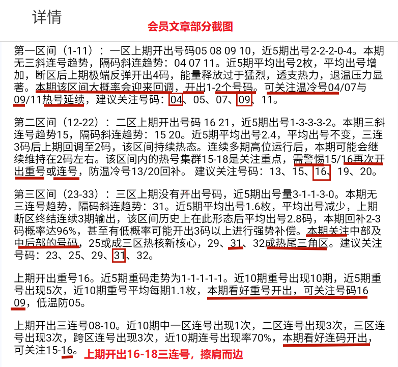 会员文章中一区关注04,09,二区关注重号16,三区31热尾。