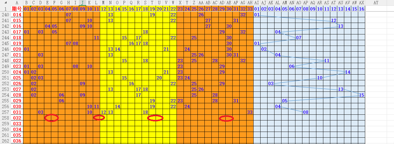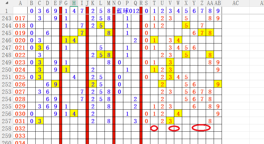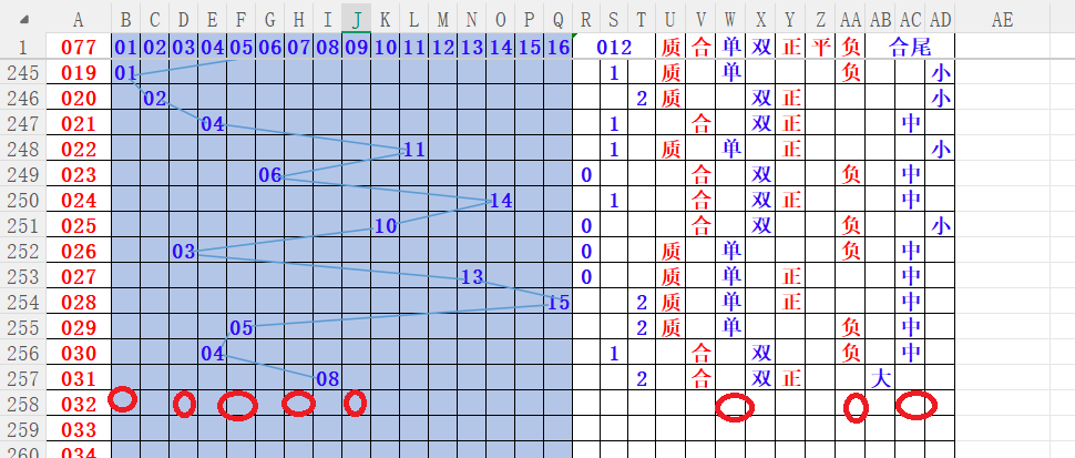如上图4,012路分析012路,本期重点10路。重点      01 03 05 07 09