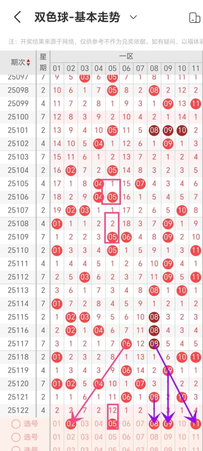 各位兄弟姐妹们大家好,我是nice,我喜欢研究数字的走势规律以及数据分析,通过同期次、同日期、同星期奖号等等出号规律进行杀号和做数据条件,红球杀号的准确率和稳定度都相当不错,首先通过上面的模块进行杀号可以做到杀红球12-15枚,然后将杀号带入到数据条件中进行选胆,这种方法屡试不爽帮助自己排除很多不必要的号码,将红球选号的数量控制在10-12枚,结合红球杀号带入到数据条件中选出的胆码,做胆拖组合控制成本