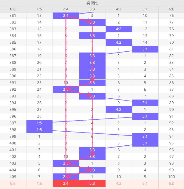 从近10期历史同期数据来看,奇数号码共开出30个,偶数20个,奇偶比达3:0,显示出奇数整体平衡的走势。上期奇偶比为24奇偶显示平衡,结合往期趋势,本期推荐奇偶比33