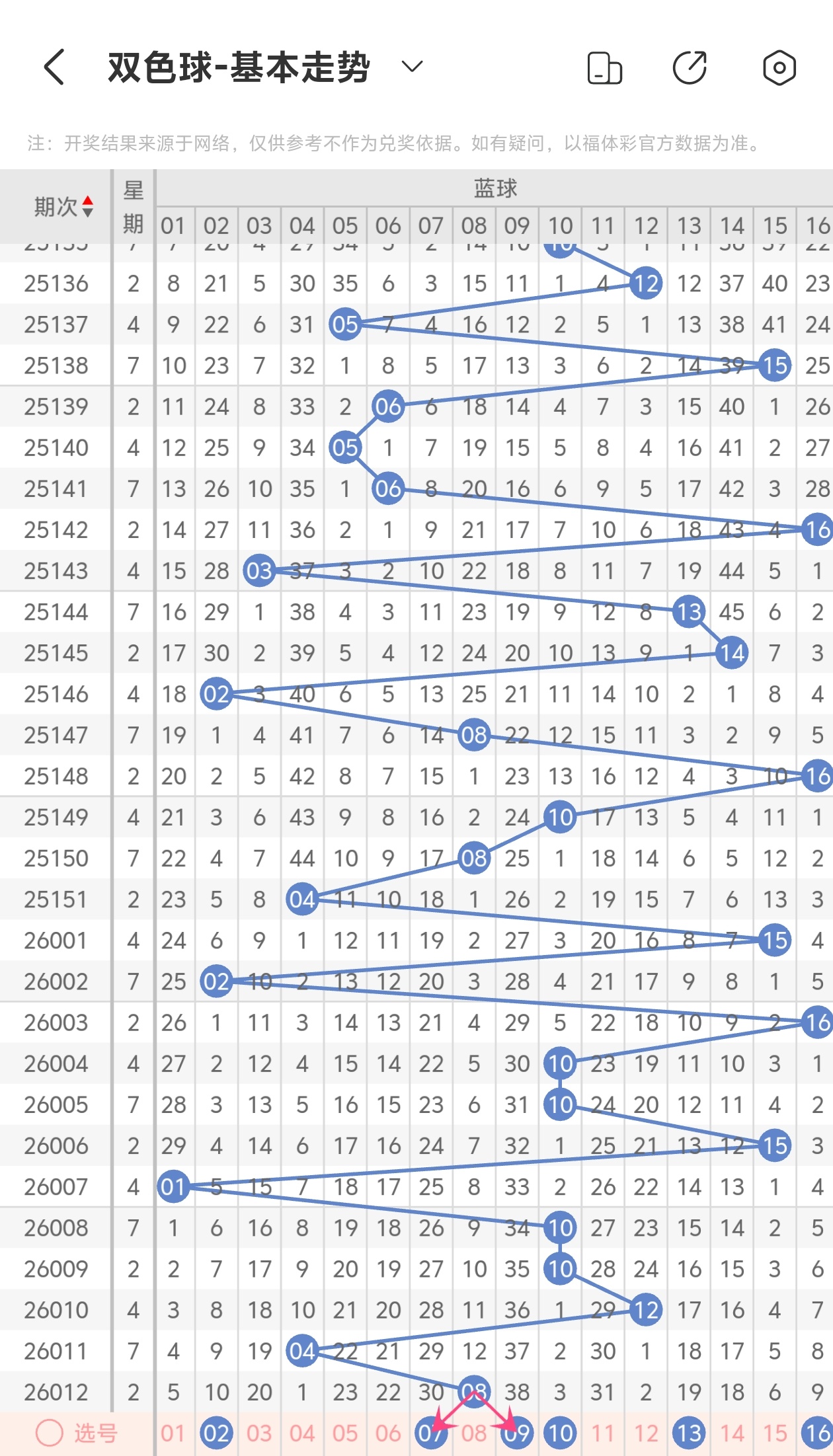 上期蓝球开出08,本期我们可以从上面走势图中看到选号的思路,07为分边走势,09为分边走势,综合以上分析本期蓝球推荐07 09 10 13 16