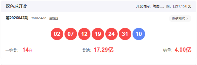 2026042开奖号码:
