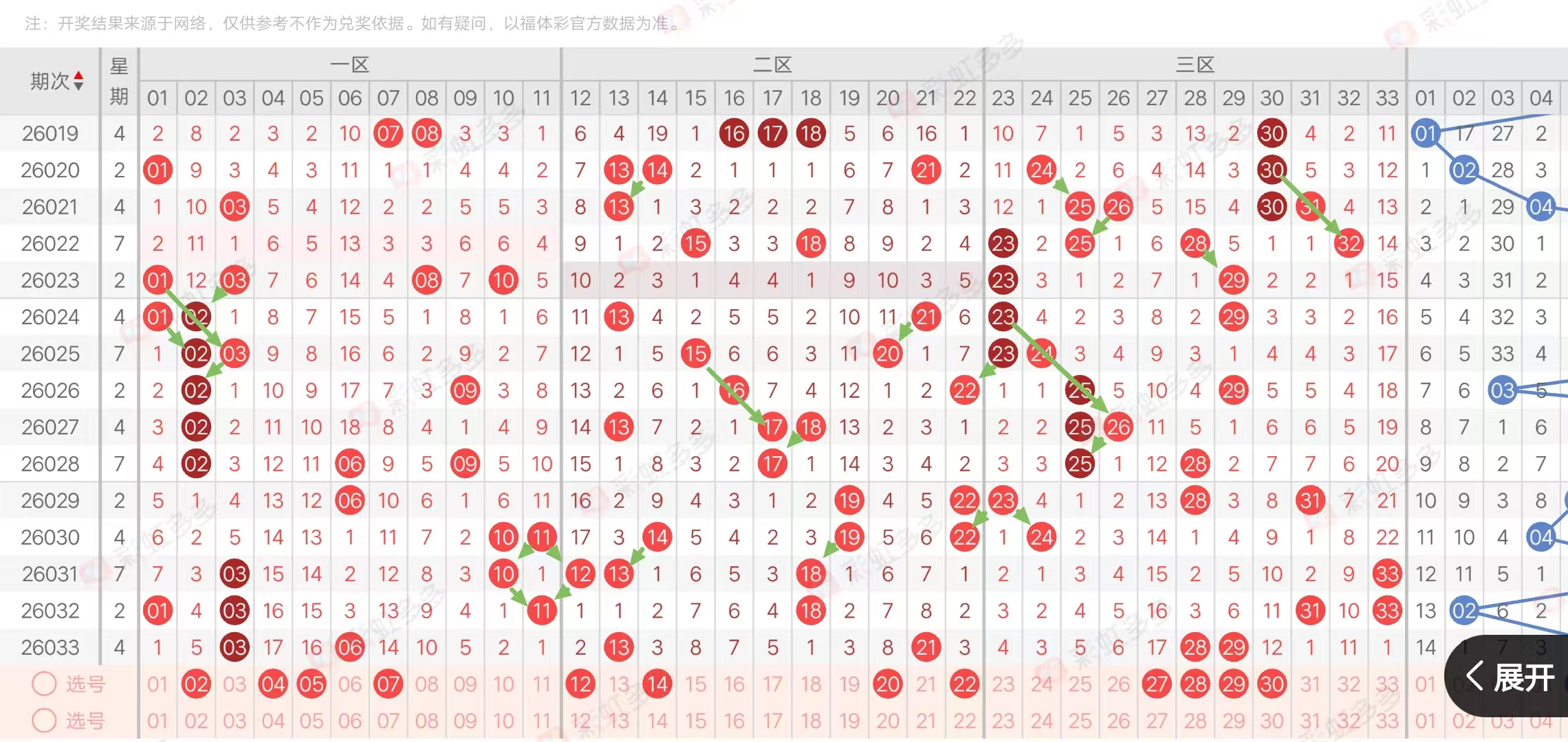 (三区:一区1-11,二区12-22,三区23-33)上期三区比2:2:2