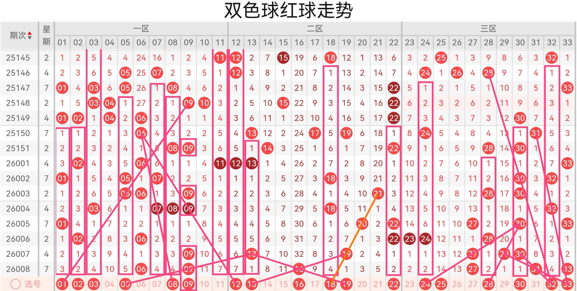 双色球第26009期基本走势分析 (上期会员文章凤尾正确,杀十红对,大底4+0)