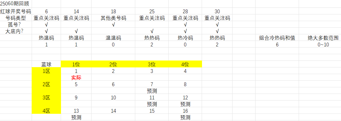 公式:【重号0~2个+重点关注码1~5个+防守码(备选)0~4个+其他类号码0~3个】,孤号2~4个,也是经过了两百多期的验证,通用率95%以上,可以和上面的组合冷温热码范围配合着选,如果有号码属于两种类型,那两个类型号码都计数一次