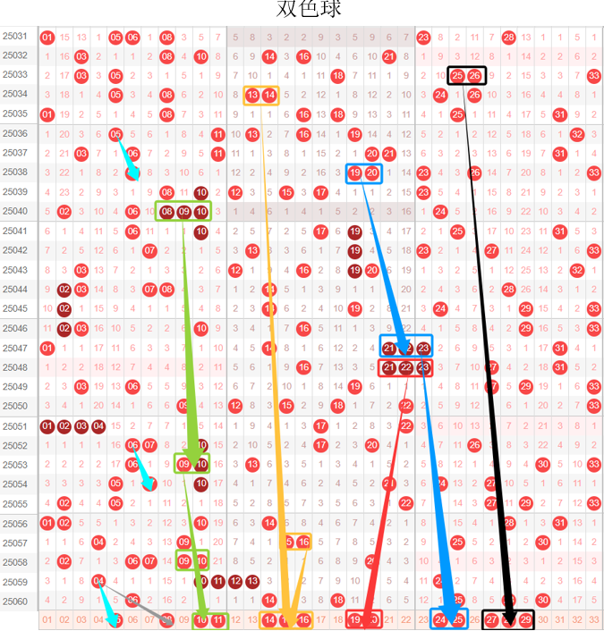 重点关注码(近30期内距离本期在1~4期的号码):1、2、6、7、9、14、15、16、20、22、25、27、28、29、30、31、33