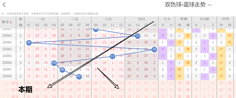 0 路号码:能被 3 整除的号码。近五期 0 路号码在各区间出现情况:一区有 6;二区有 15、21、20;三区有 28、30、33。从走势看,0 路号码在一区出现频率较低,本期可适当关注一区 0 路号码回补,如 3、9;二区 0 路号码相对稳定,21、20 的出现有一定连续性,本期可关注 12、18 等;三区 0 路号码 28、30、33 有一定间隔,可关注 27、33 等。