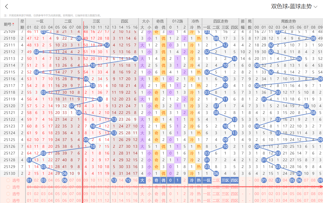 上期开出小号偶数06,从走势上号码整体分布结合折线运行轨迹本期蓝球重点关注五码01 03 06 13 15参考。有关更多详细选号思路以及号码组合搭配 我们15:00~17:30点有选号思路详细解析的直播节目欢迎大家前来一起探讨交流。