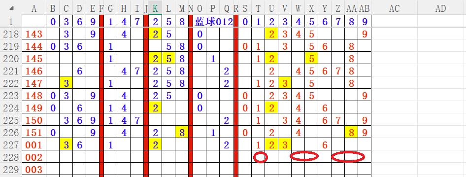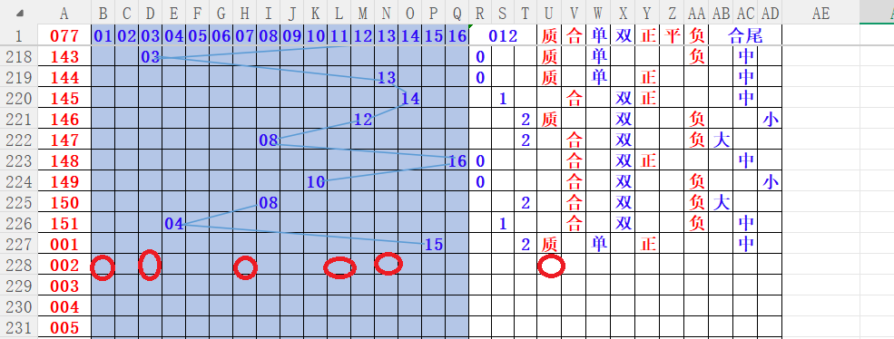 如上图4,012路分析012路,本期重点10路。重点     01 03 07 11 13