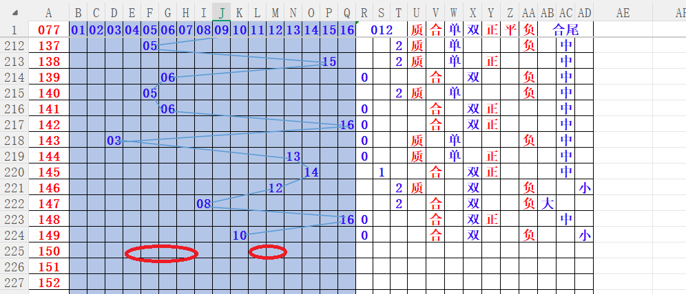 如上图4,质合分析,质数连续两期,本期重点合 03 04 05 11 12 关注 。