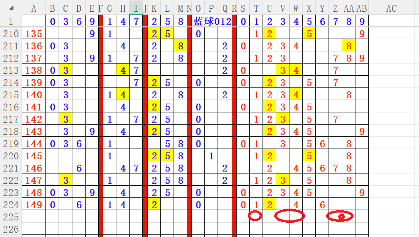 如上图4,012路分析012路,本期重点10路。重点 03 04 05 11 12