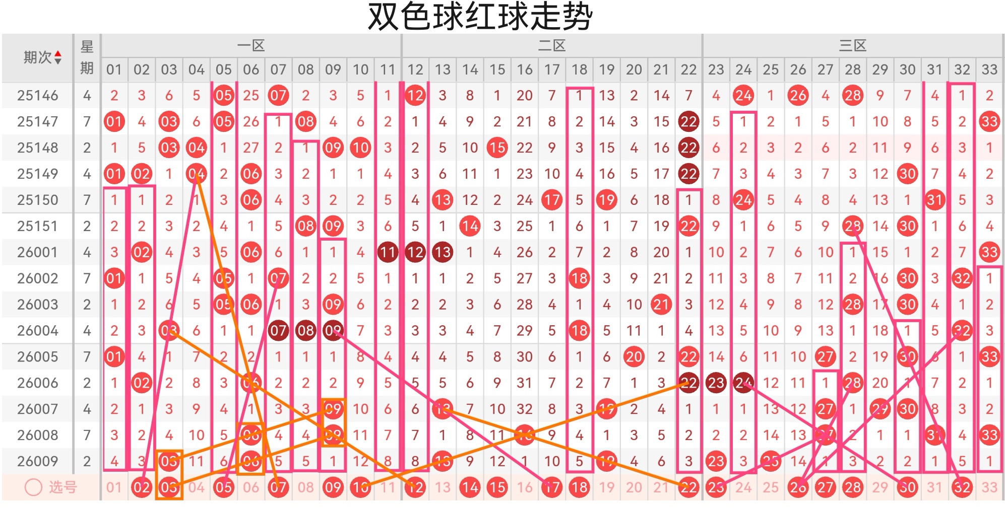 双色球第26010期基本走势分析 (上期会员文章杀五红正确)