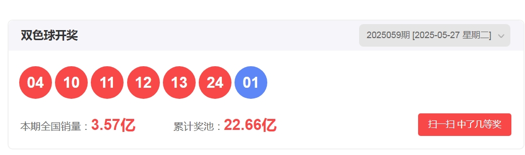 一、双色球2025059期开奖号码: