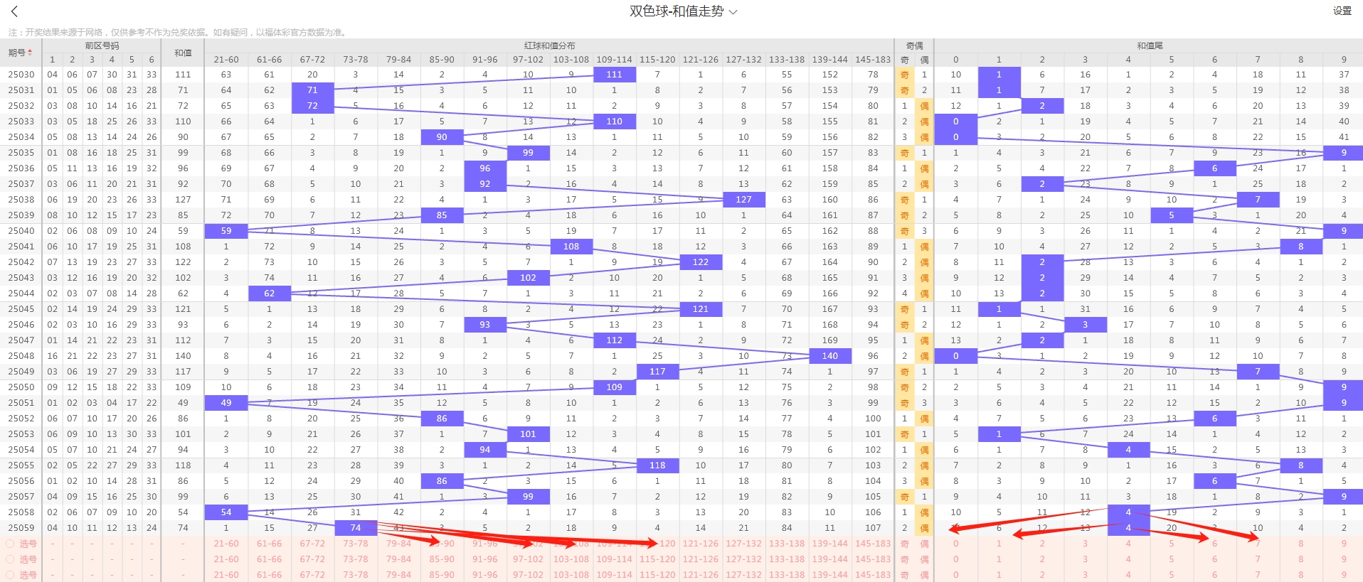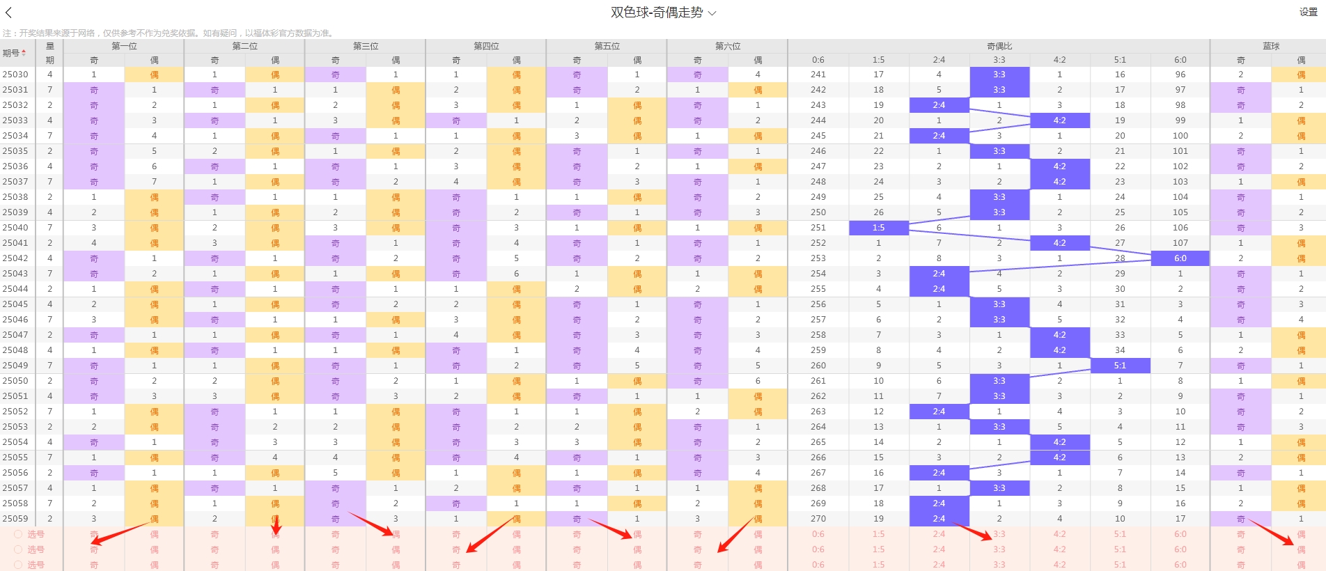 今天这期的趋势判断,前区红球主看奇数反弹,后区蓝球主看偶数回补,自行斟酌,参考为主。