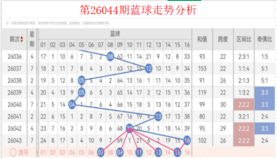 双色球第26044期走势及分析