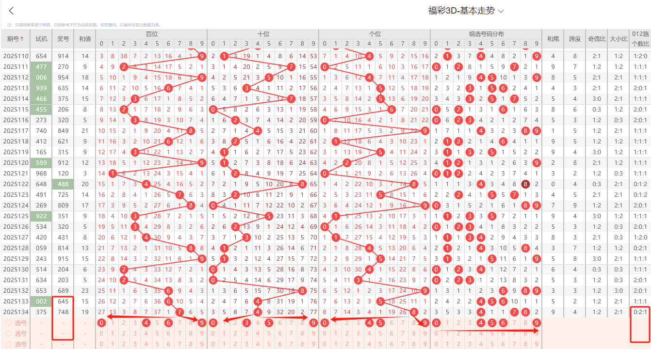 ③个位:上期开出大号偶数8号,上期出现奇偶互变开出偶数2路号码,根据历史记录012路及奇偶周期性规律变化的特征特点本期0路号码有开出的趋势2路号码注意预防。