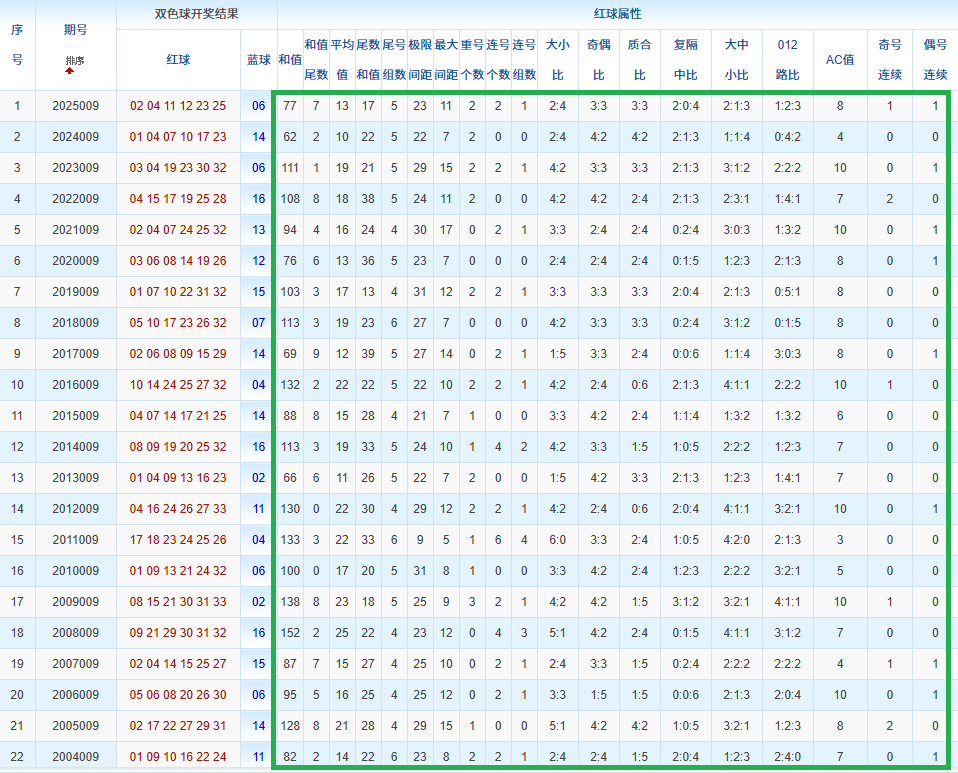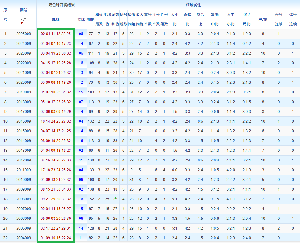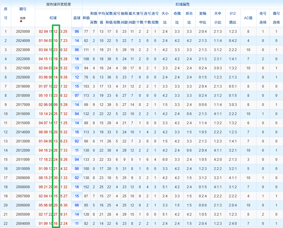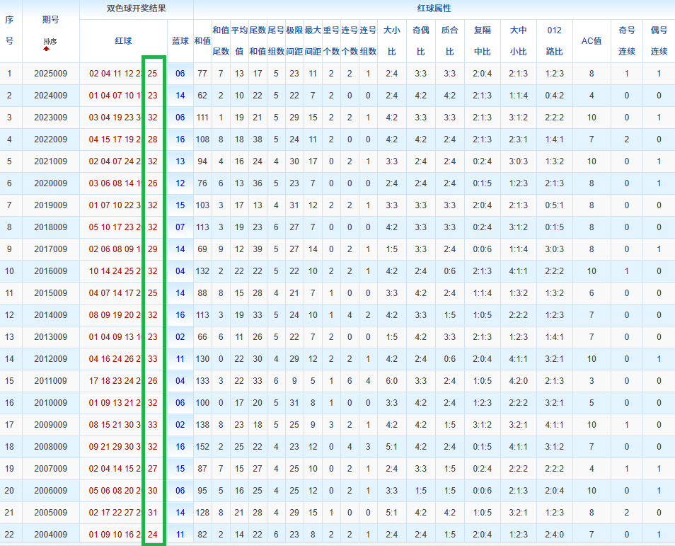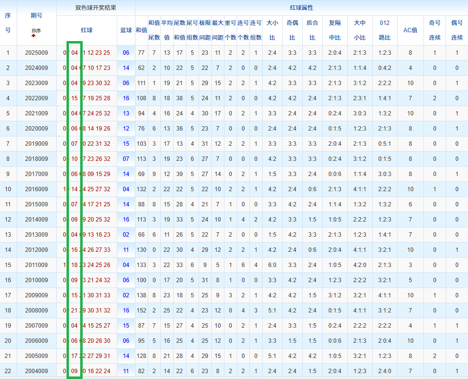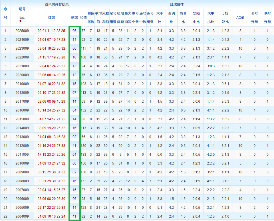 通过观察,我发现双色球往年同期的开奖数据与本期号码之间存在显著关联。具体来说,在红球中,从第一位至第六位,通常会有约4个位置上的数字与往年同期相同位置的号码一致;而蓝球号码中,也有多期开奖结果直接包含了往年同期的数字。因此,我们可以借助往年同期各位置上的号码,作为分析本期开奖情况的重要依据。在此基础上,还可结合往年同期的其他相关条件,进行综合性的号码组合推荐。