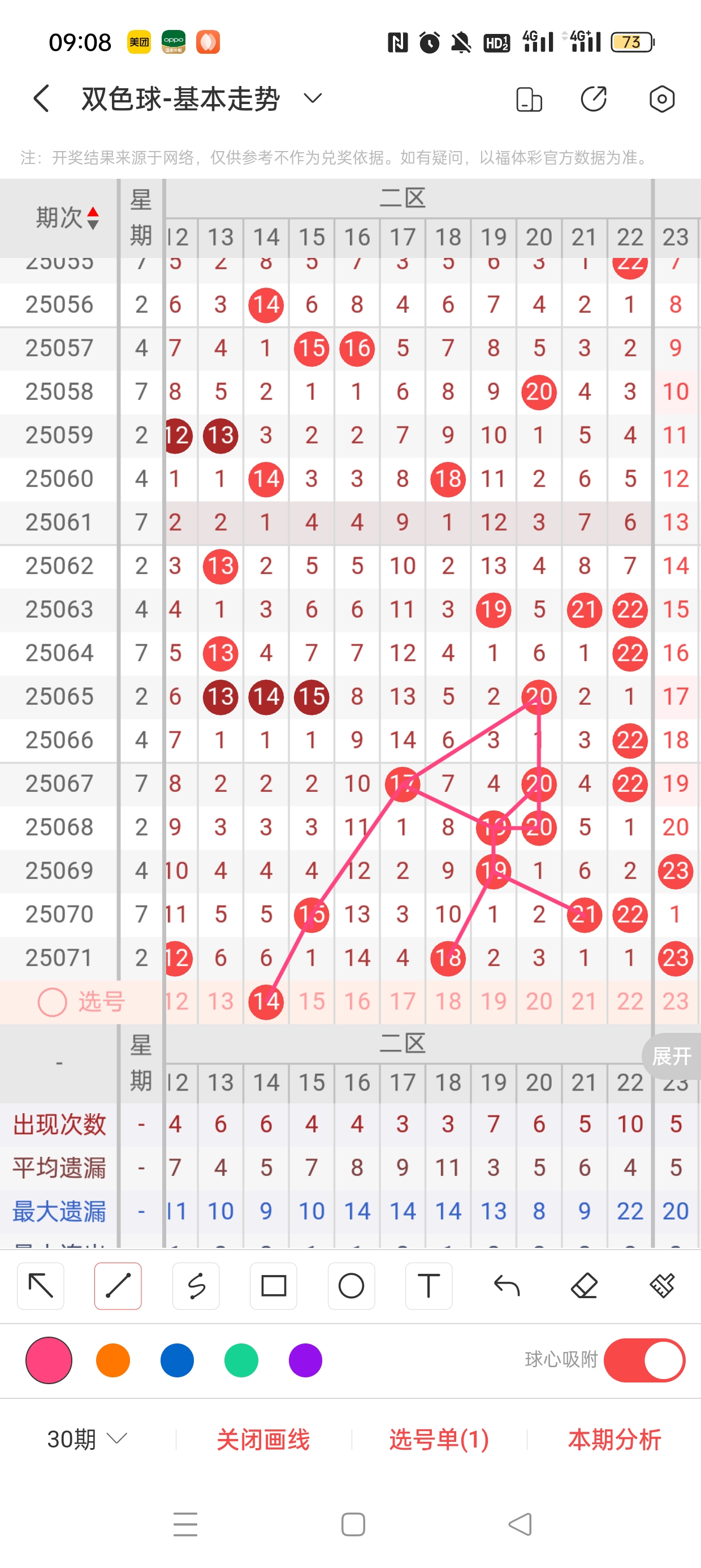 二区(12-22)近69期本区邻孤传37邻66孤11传,孤号热度高,本期着重邻传。近69期本区012路35:49:32,0/1路热度高,本期着重2路。14已遗漏6期,与15之间呈现向左遗漏递减态势,需防。