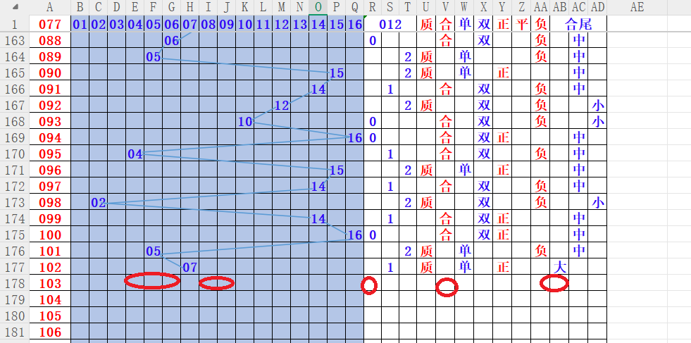 如上图4,质合分析,质数连续两期,本期重点合  04 05 06 08 09关注 。