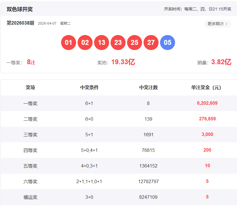 双色球上期开奖结果:01.02.13.23.25.27+05