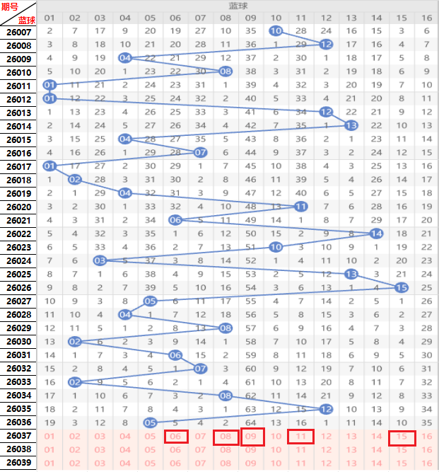 双色球第26039期走势图画线分析,又到了拼运气的时候!