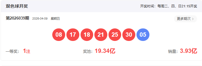 2026039开奖号码: