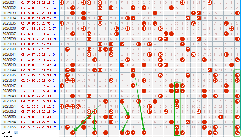 回顾上期25055期开奖02 05 22 27 29 33 + 12,其中一小区01-11出2个,二小区12-22出1个号,三小区23-33出3个!