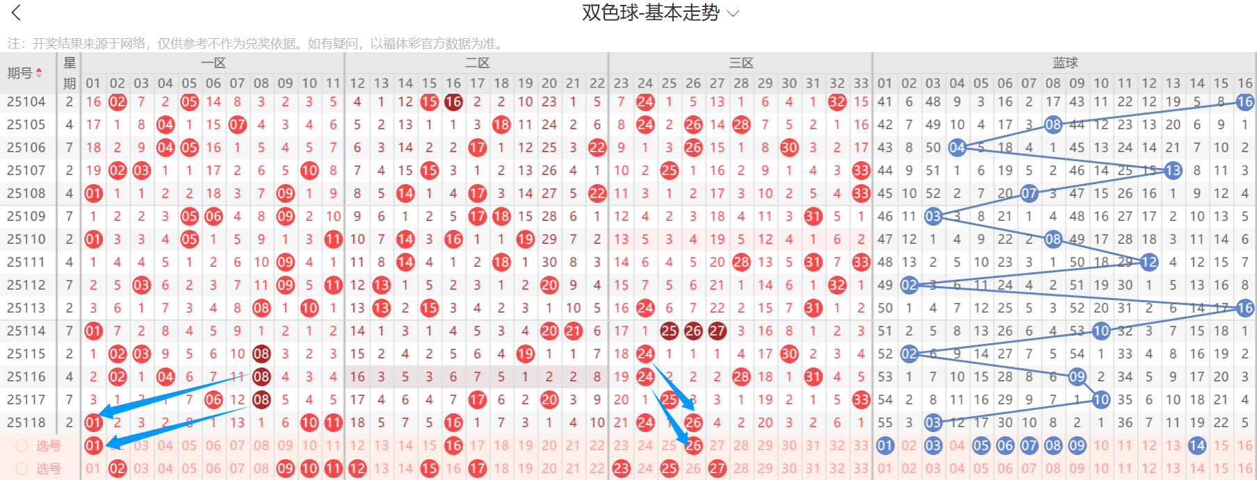 上期直播间有人问10.11的连号,老粉丝应该知道这个号我看好几期了,上期我用肯定的语气回答是可以的,不知道那位朋友有没有抓到,加上24,还有5.16出一,有16,还有我没看的26,但是直播间随缘给的胆就是26,是不是这么看下来也没那么难了,所以还是理性坚持吧,本期的重号看1.16.26,上期重号忽然消失有点意外,本期还是要再琢磨琢磨,有概率会改变看法,到时候直播间分享,边号是下面的一排,考虑两个左右,