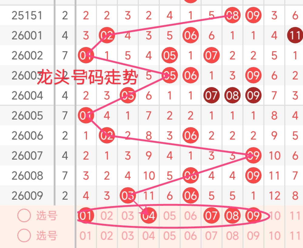 龙头号码走势分析: