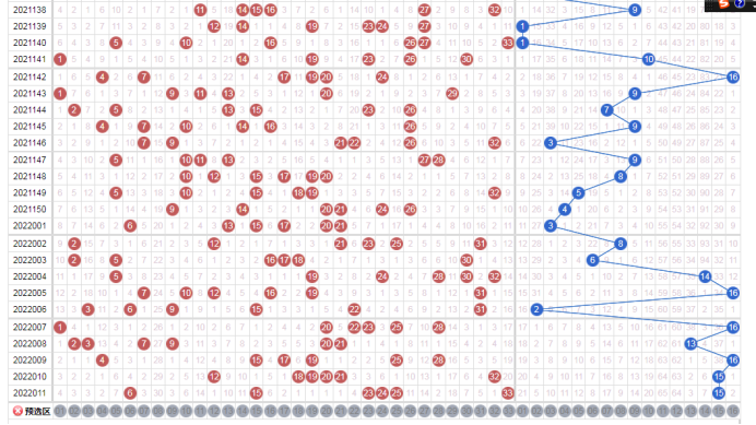 001期开奖号码是06 13 15 17 20 21+03,此时第4位置的红球号码是17,那位差就是17-4=13,这个13就是我们的位差,那么下期排除胆码是03 13 23 33,号码来到002期开奖是02 12 21 23 25 31+08,从这里可以看到排除号码03 13 23 33成功了。