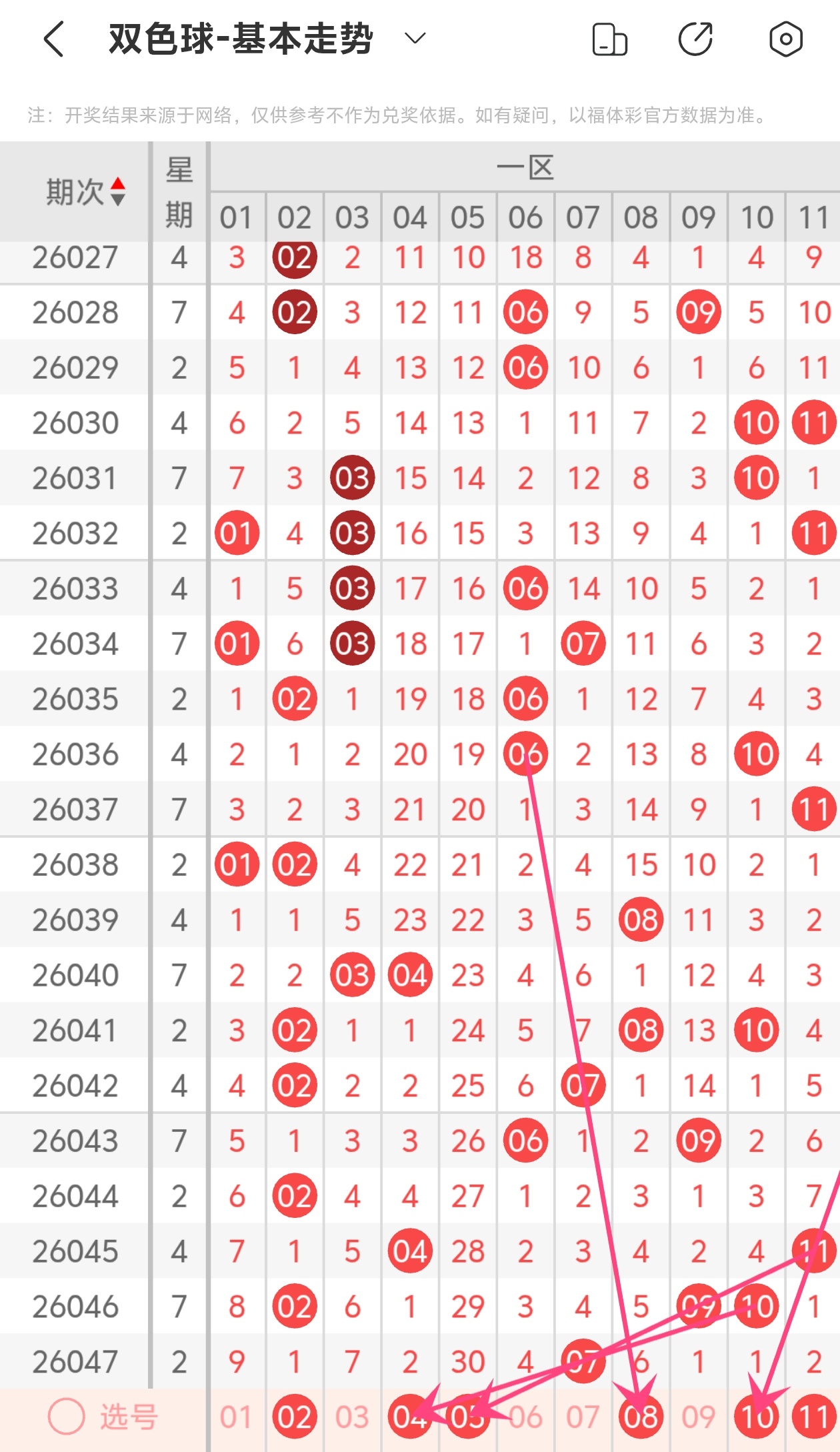 上期仅开出07,一区严重偏冷。近10期一区出号18枚,上期仅1枚,回补需求极其强烈 。02、05为长期冷号,遗漏值已进入回补高危区;04、08、11为温号,与上期07构成邻号或斜连号关系,补位逻辑清晰。