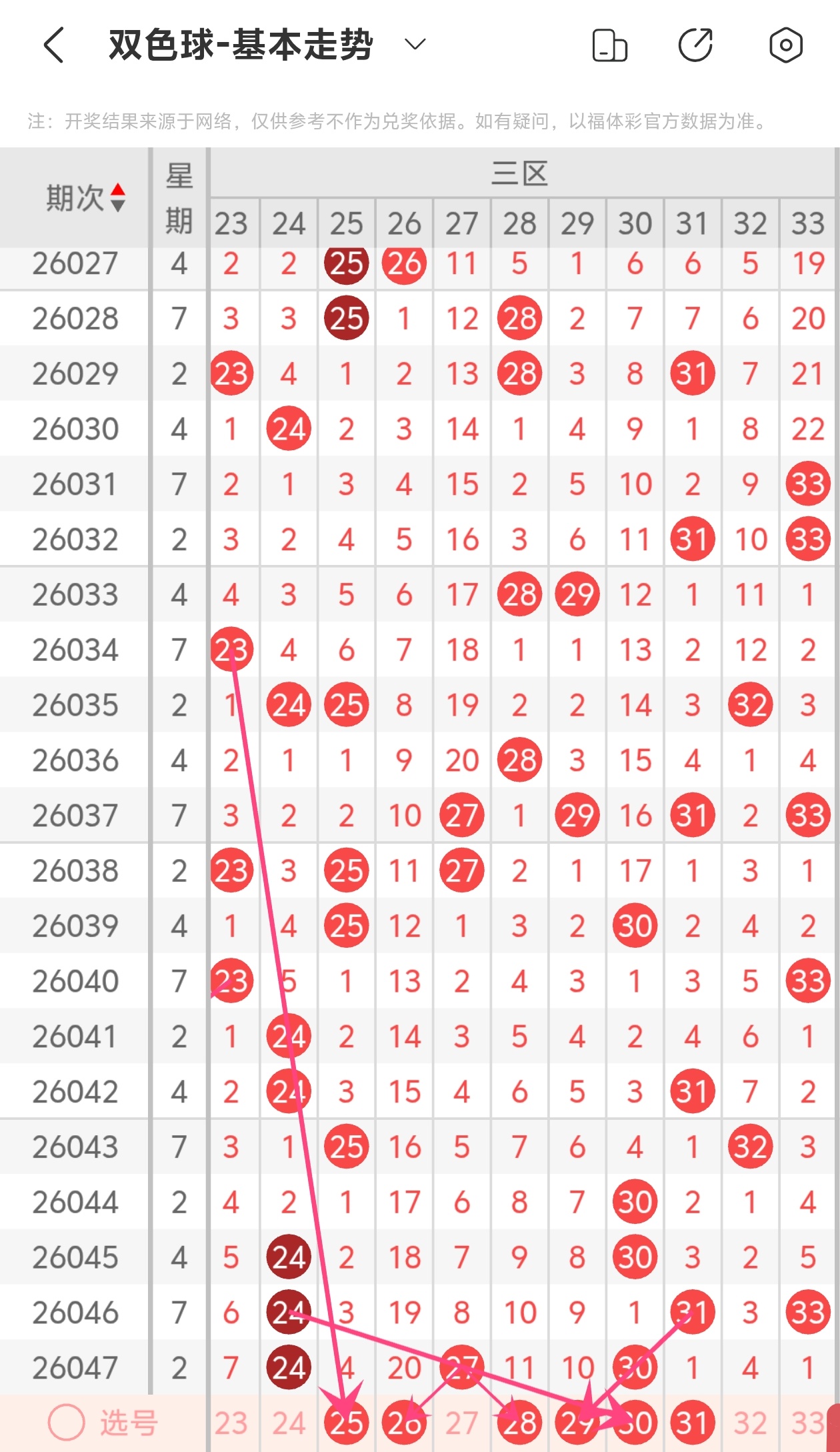二区在近10期出号28枚,为绝对热区 。13-14连号组合在近30期出现频率高达40%,是二区最稳定的形态之一。