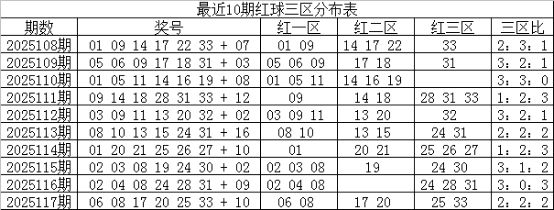关键词六:红球三区分布: