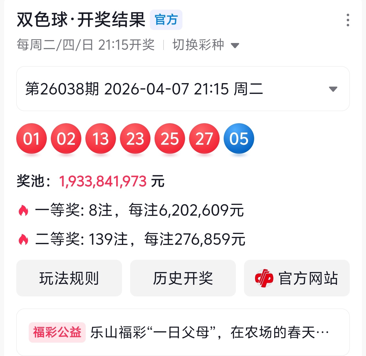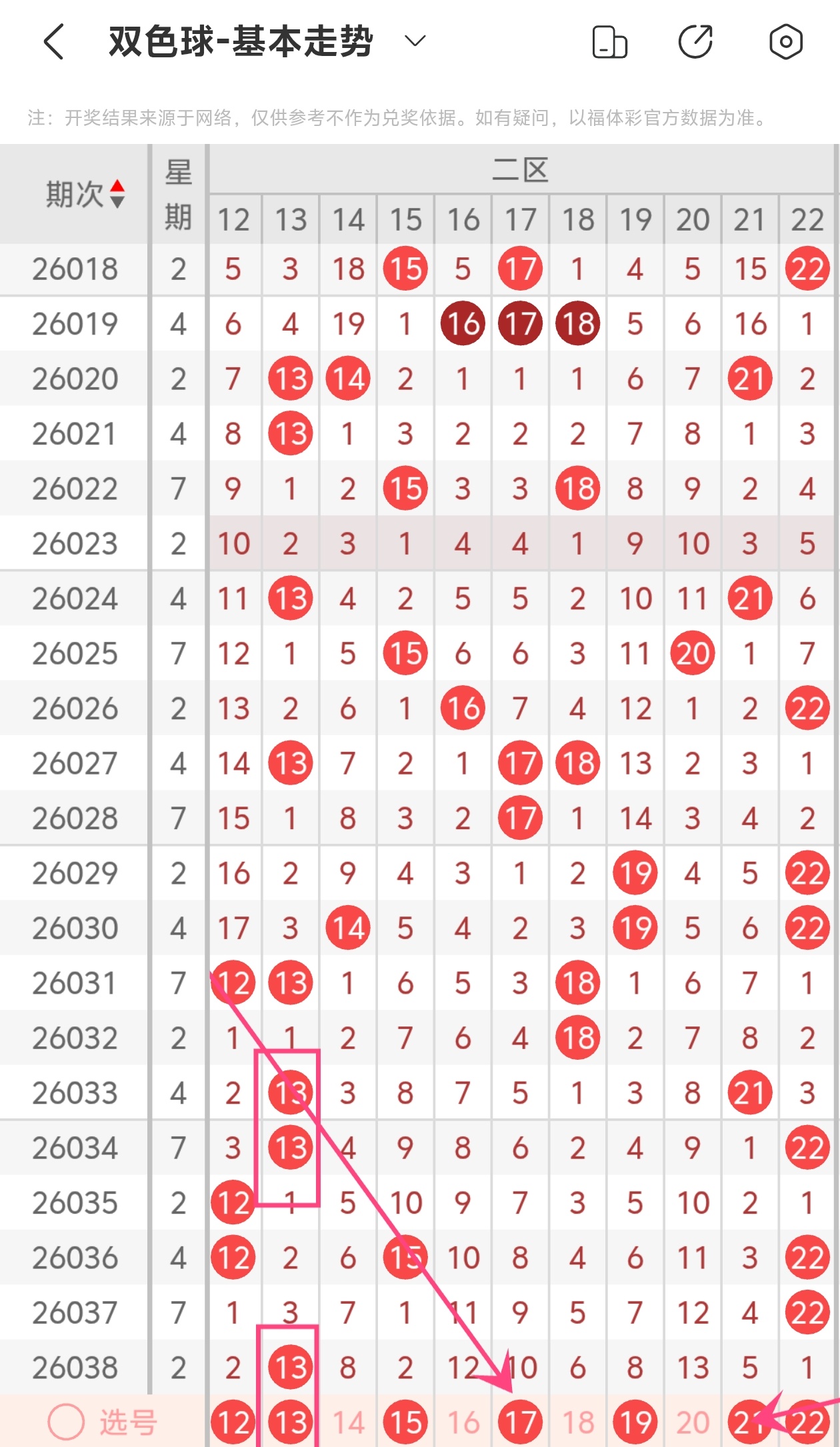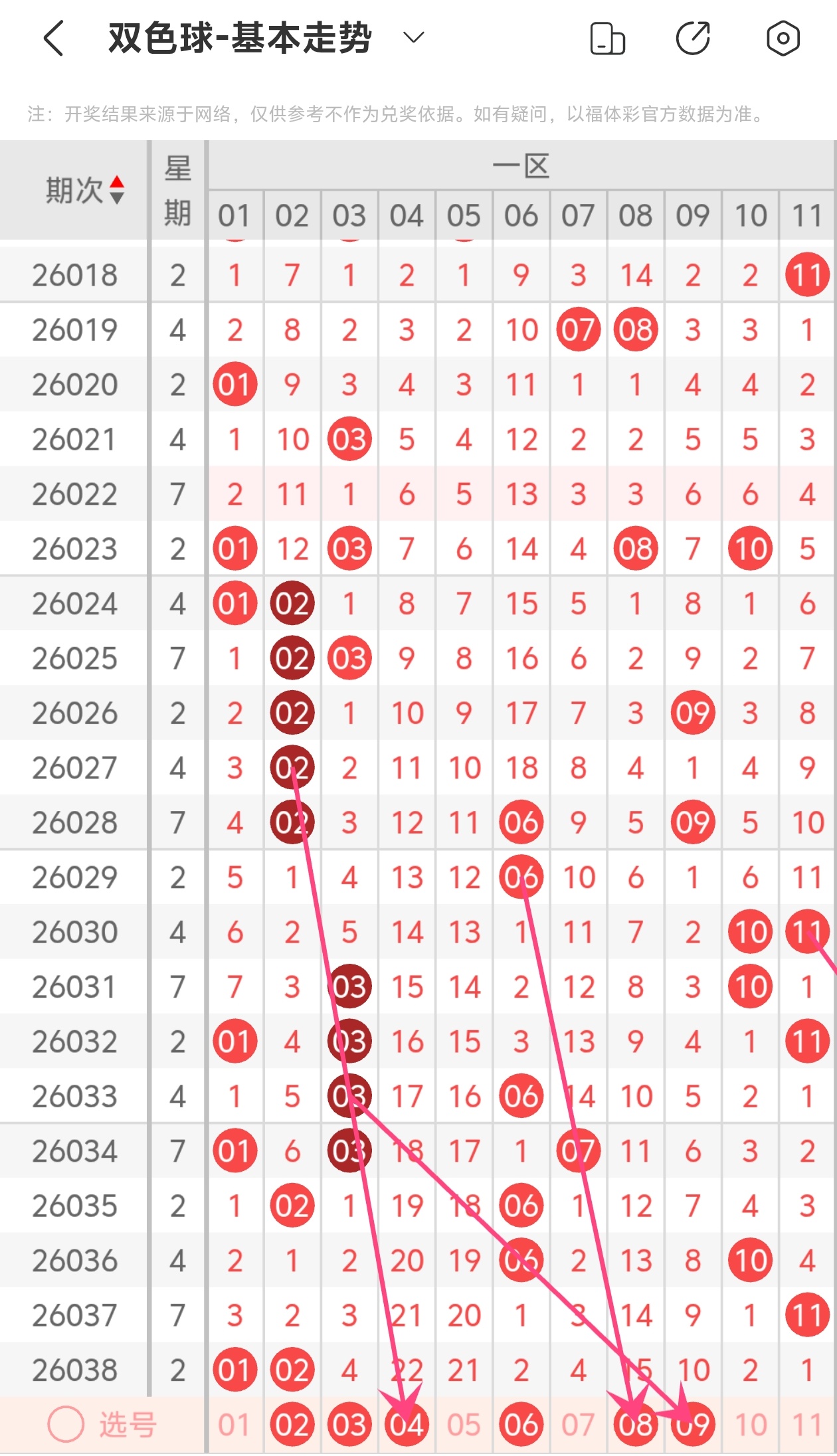 下面是我对2026039期福彩双色球的分析和预判,希望通过我的分析能让大家今晚大红!福彩双色球上期开奖号码如下图:
