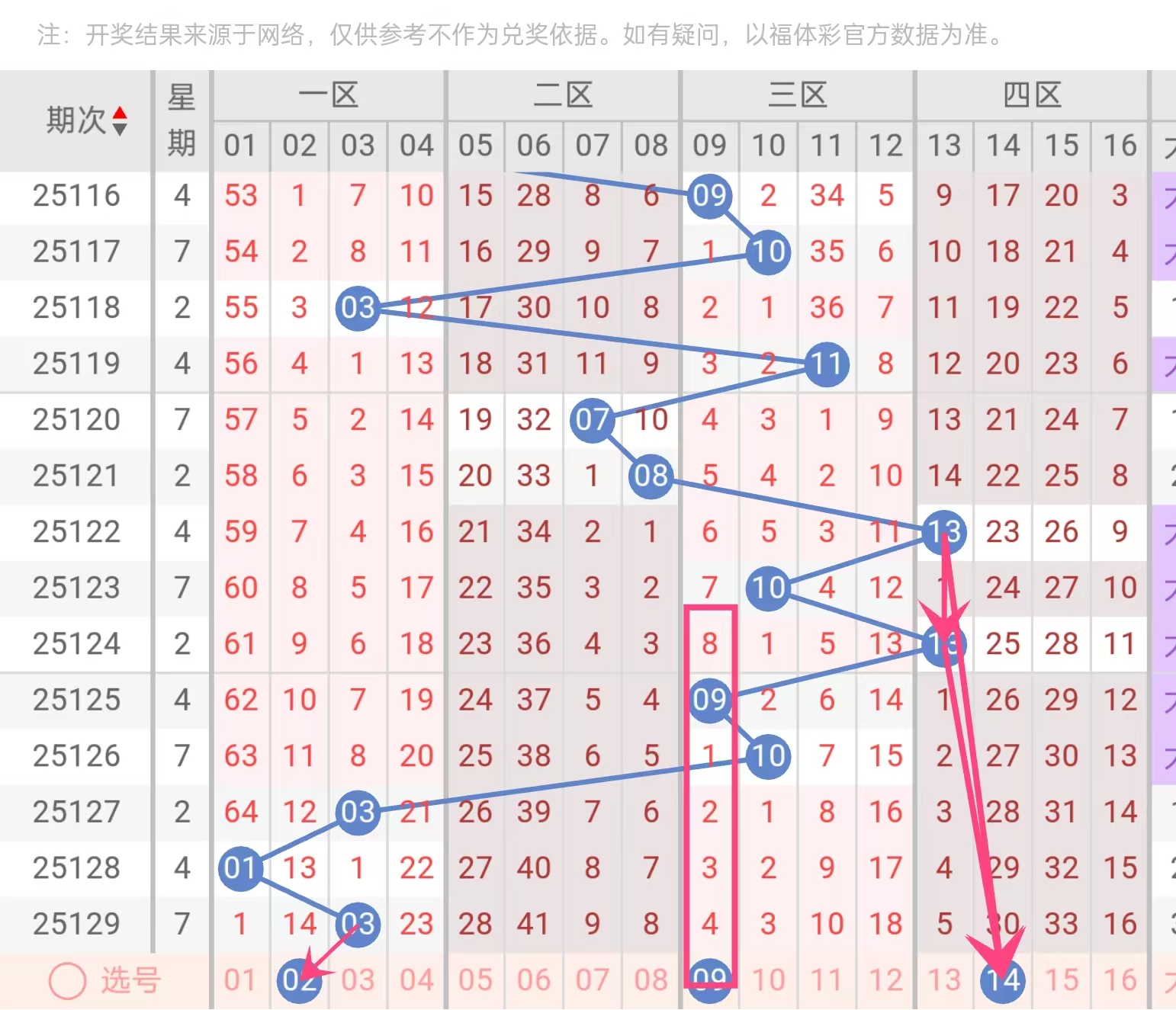 03号:前端号码03显示出明确的回补信号。经过充分调整后,该号码的各项技术指标均显示反弹在即。作为前区奇数代表,03号的开出有望重新激活02-04区段的活力,与10、16等号码形成良好互动。在当前前区整体偏冷的背景下,03号的回补具有重要战略意义。