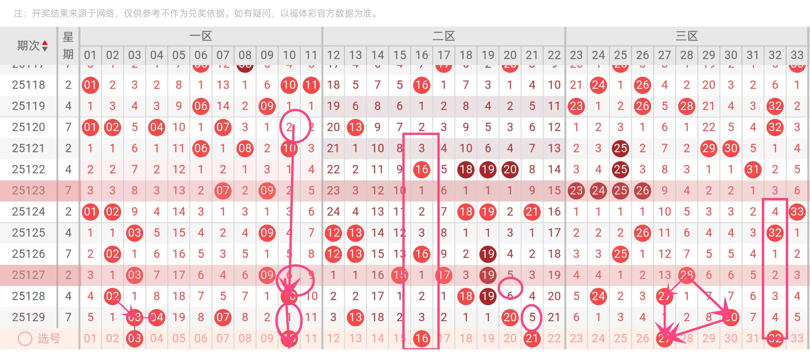 红球推荐:03、10、16、21、27、32