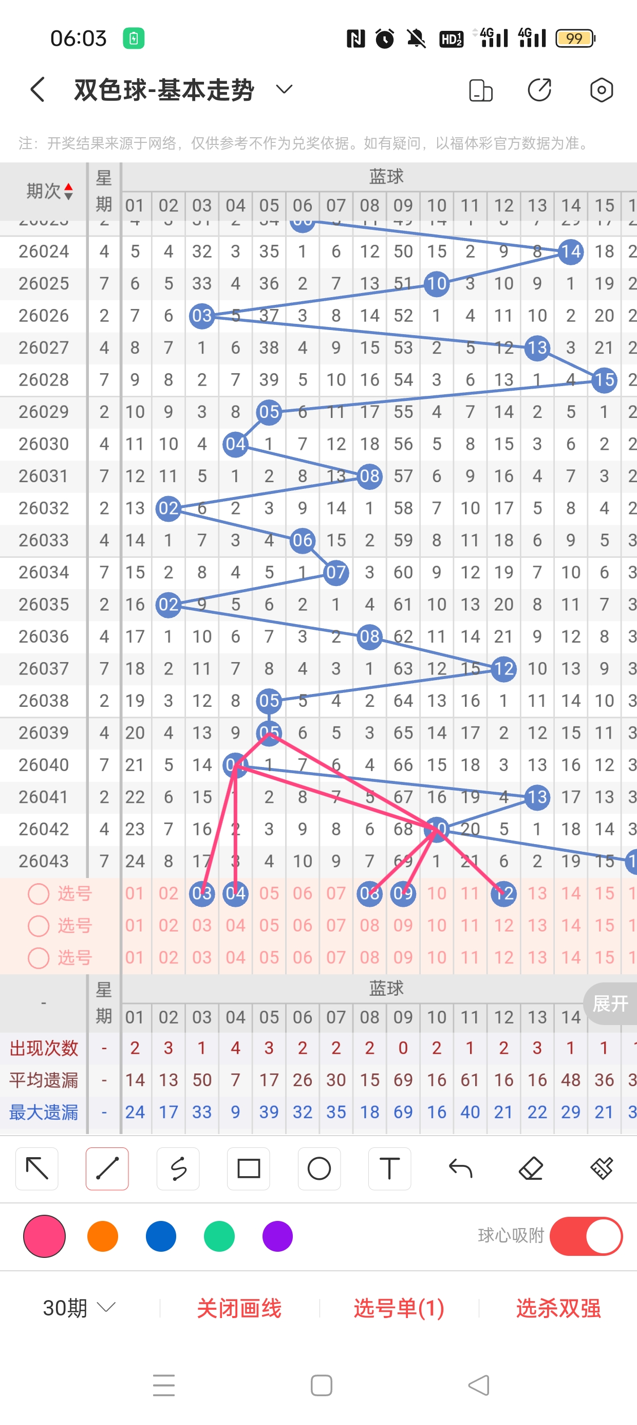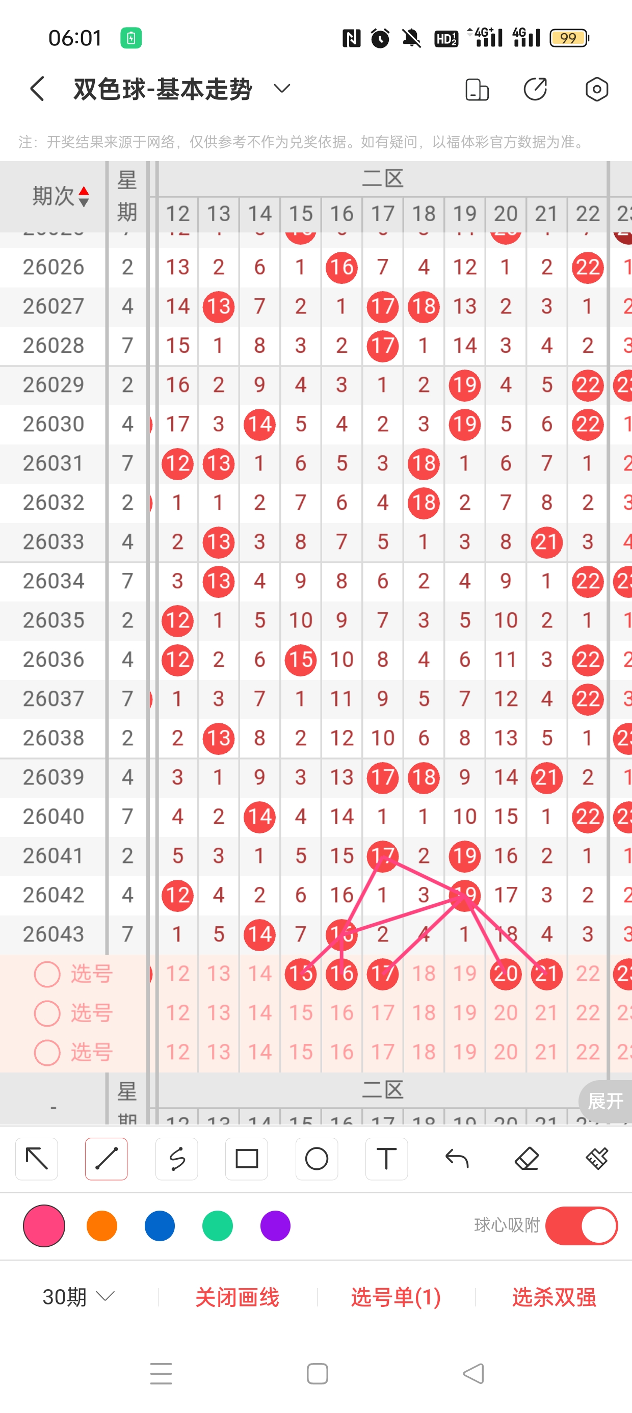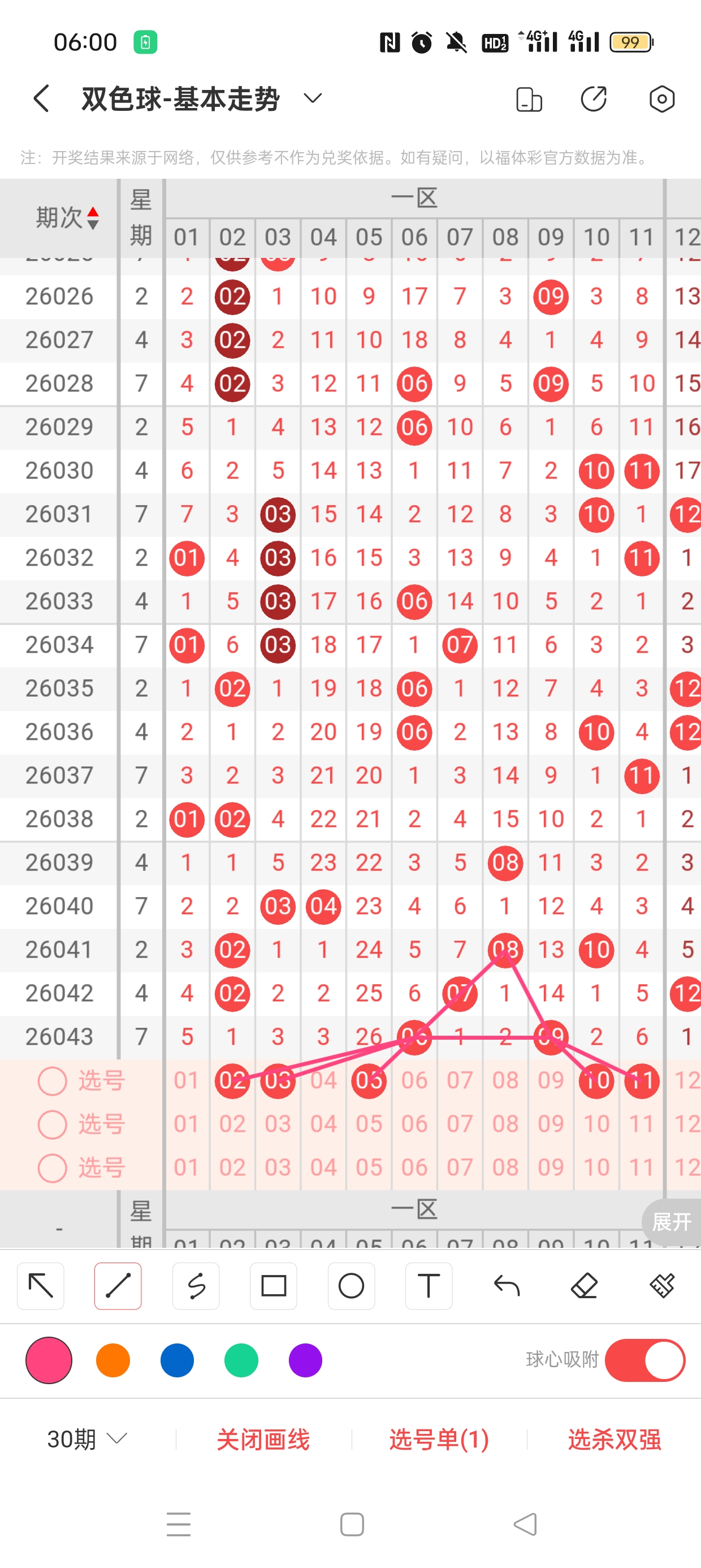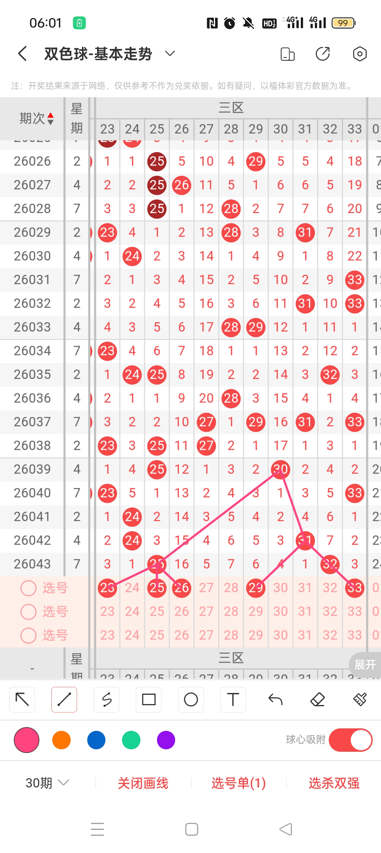 26043期开奖结果:6、9、14、16、25、32+16,奇偶比2:4,大小比2:4,和值95,012路222,邻孤传0邻6孤0传,同尾号6、16,传号无,连号无。总结完毕,下面开始本期分析。