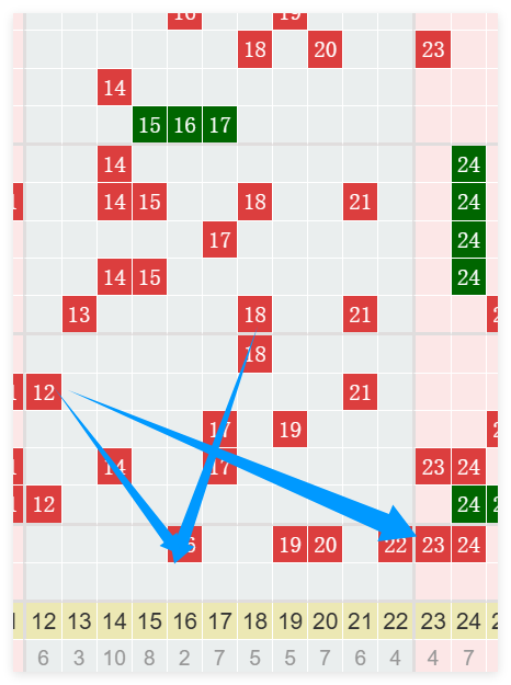 那么首先回顾一下我们上期文章推出了红球11.24.25.共三个红球,蓝球的话没有没有围住