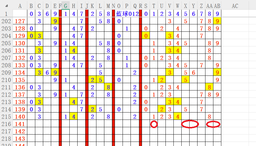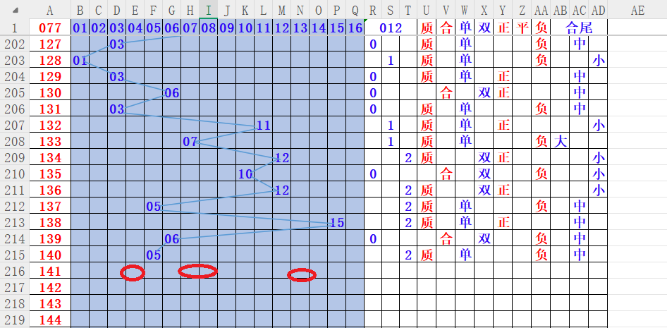 如上图4,012路分析012路,本期重点10路。重点 04 07 08 15 14
