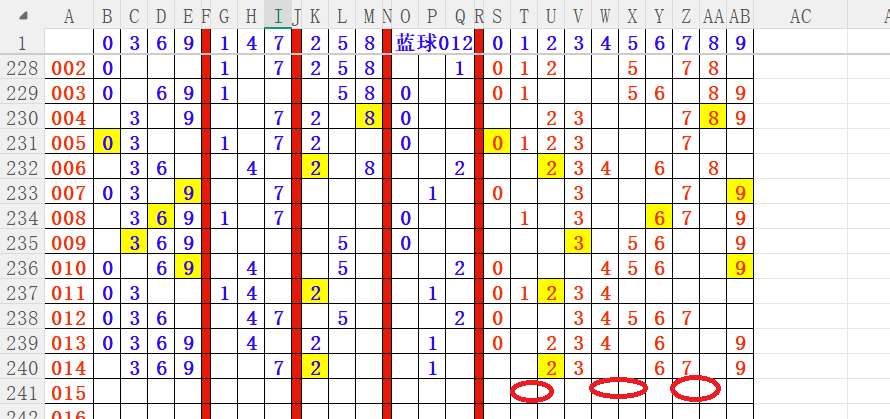 如上图4,012路分析012路,本期重点10路。重点 02 04 05 06 10