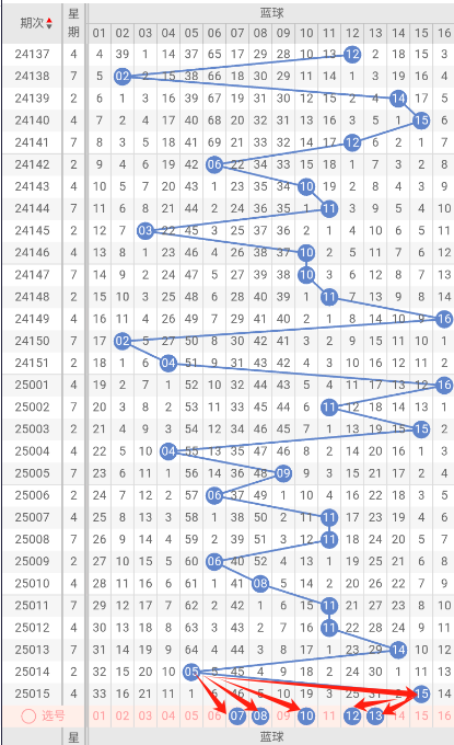 根据走势图近10期的走势看,蓝球在006期开出06蓝球之后,2大2小3大1小1大,再看下近10期的蓝球冷码有回补的趋势,这种趋势规律本期判断极有可能开出冷码大号,本期防热码蓝球08小号,蓝球本期重点关注08.10.12.13